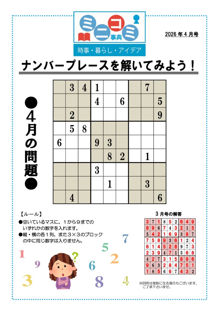 読売ミニ事典 ナンバープレース解いてみよう♪