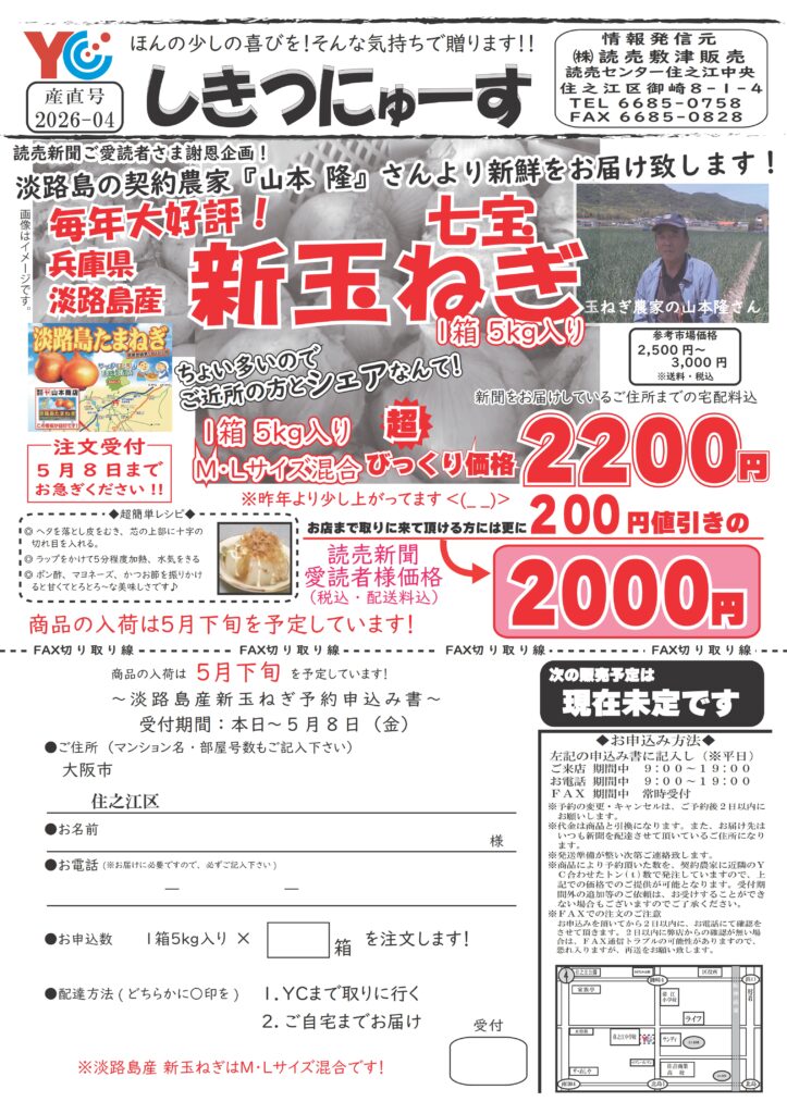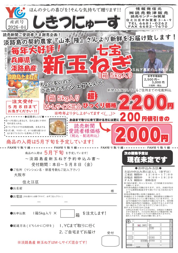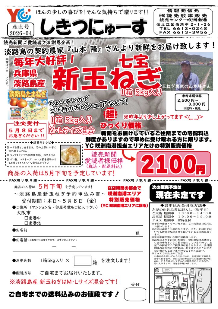 読売センターからのお知らせ【《産直》淡路島産 新玉ねぎ】