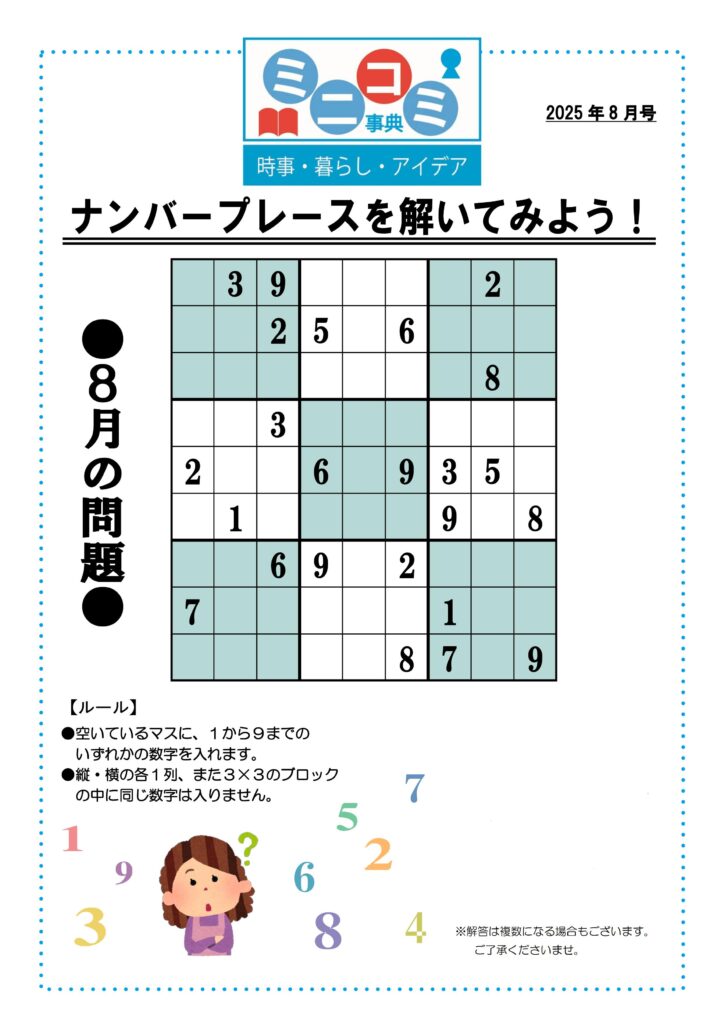 読売ミニ事典 ナンバープレース解いてみよう♪