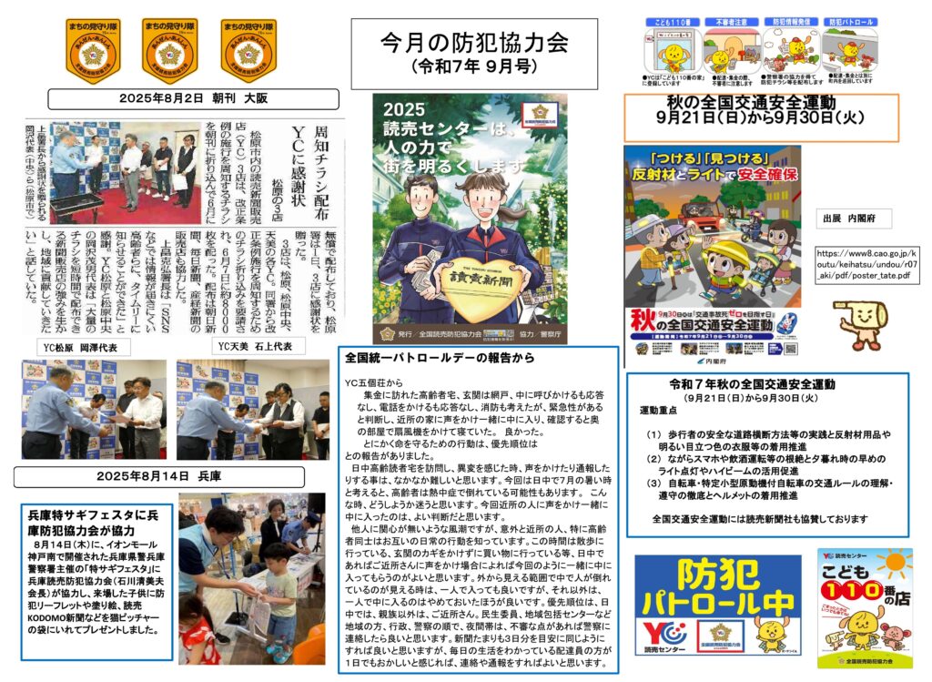 読売新聞大阪本社館内の各読売センターの活動や各府県警察本部からの防犯情報等を紹介♬