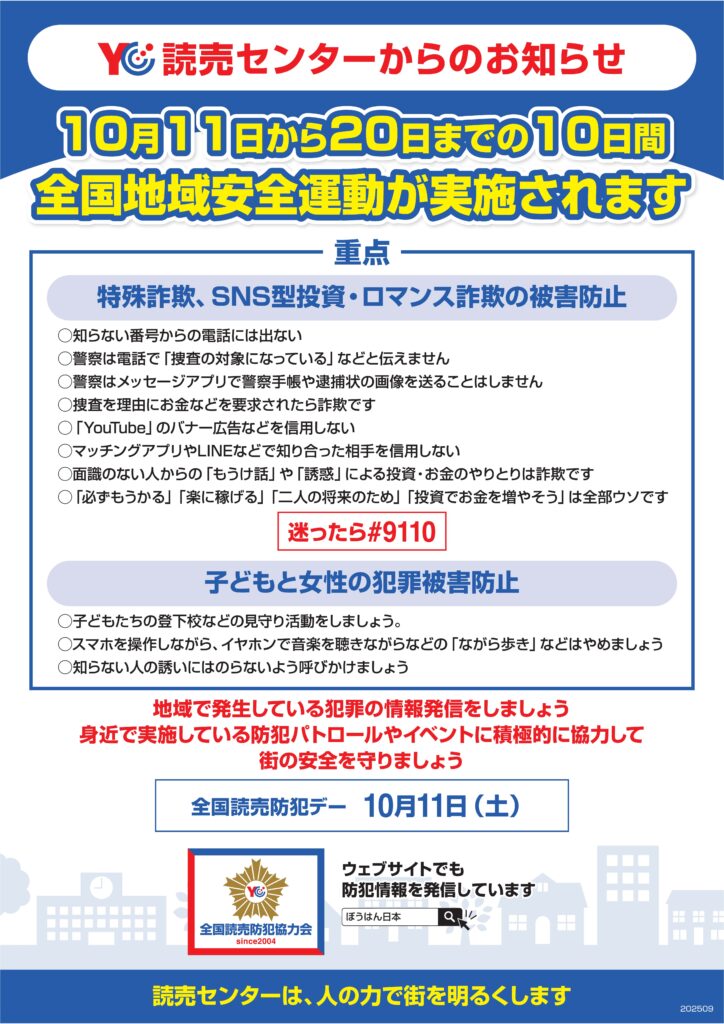 全国読売防犯協力会ではウェブサイトでも防犯情報を発信しています♪