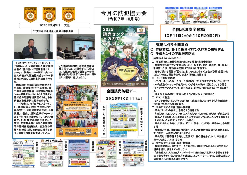 読売センターからのお知らせ【防犯協力会】