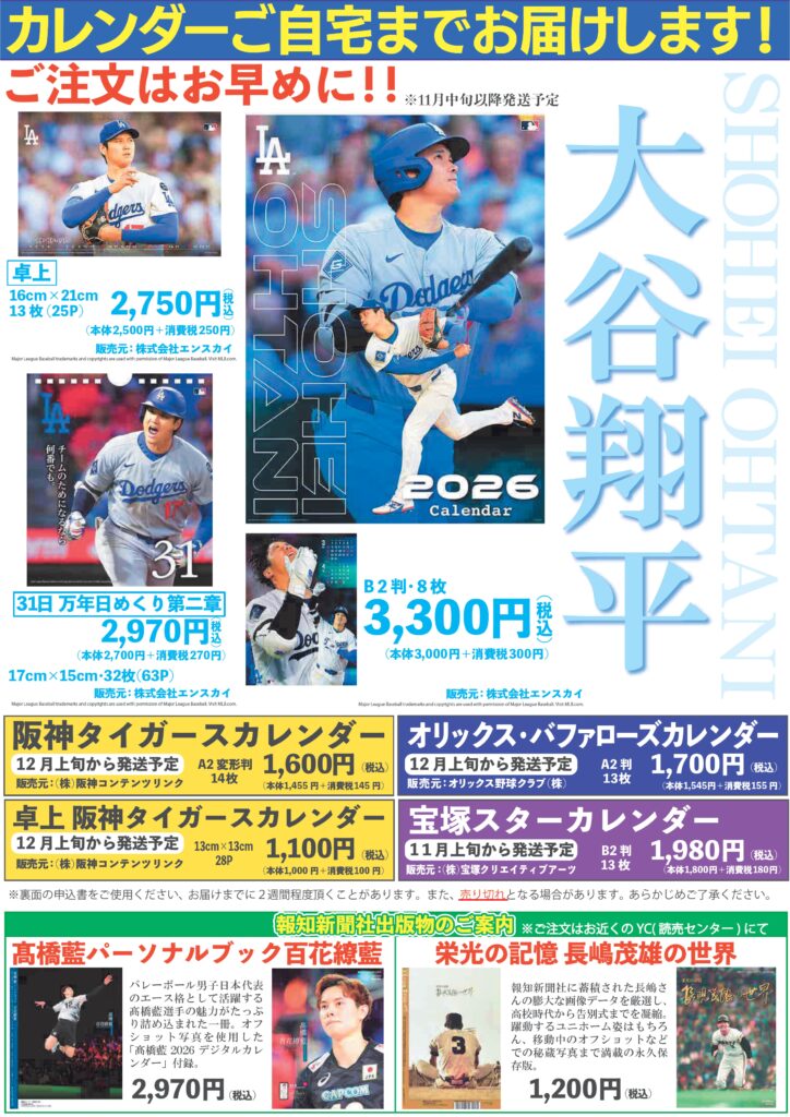 【スポーツ報知カレンダー販売】