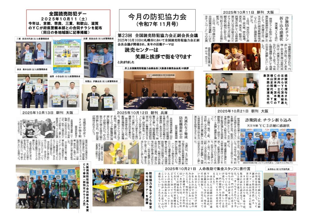 読売新聞大阪本社館内の各読売センターの活動や各府県警察本部からの防犯情報等を紹介♬