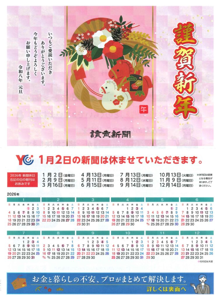 今回の休刊チラシには2026年の休刊日予定の記載もございます。