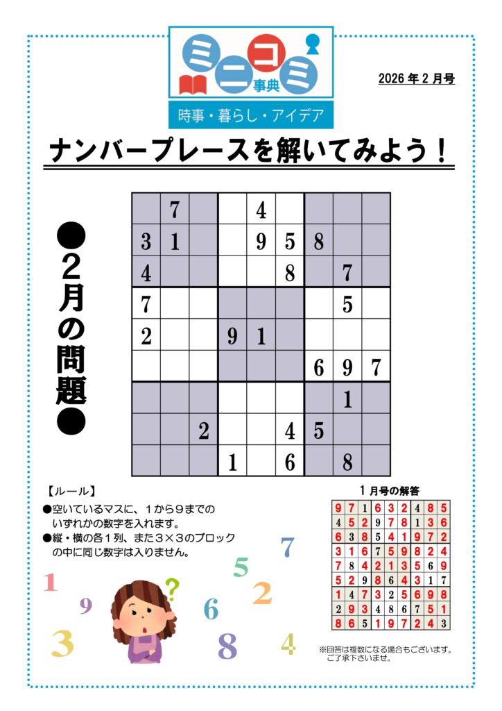 読売ミニ事典 ナンバープレース解いてみよう♪