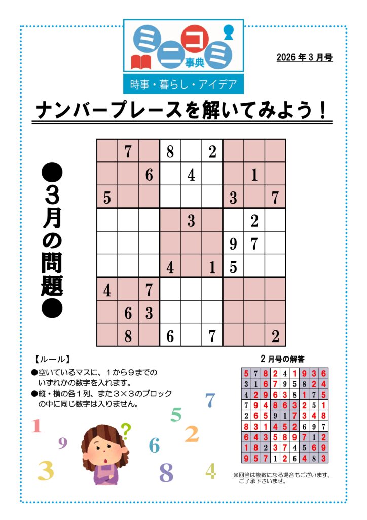 読売ミニ事典 ナンバープレース解いてみよう♪