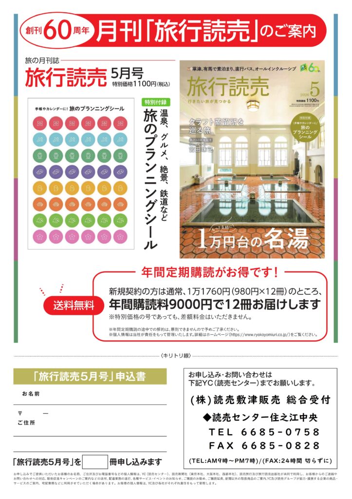 旅の月刊誌 創刊60周年 『旅行読売5月号のご案内』※特別価格
